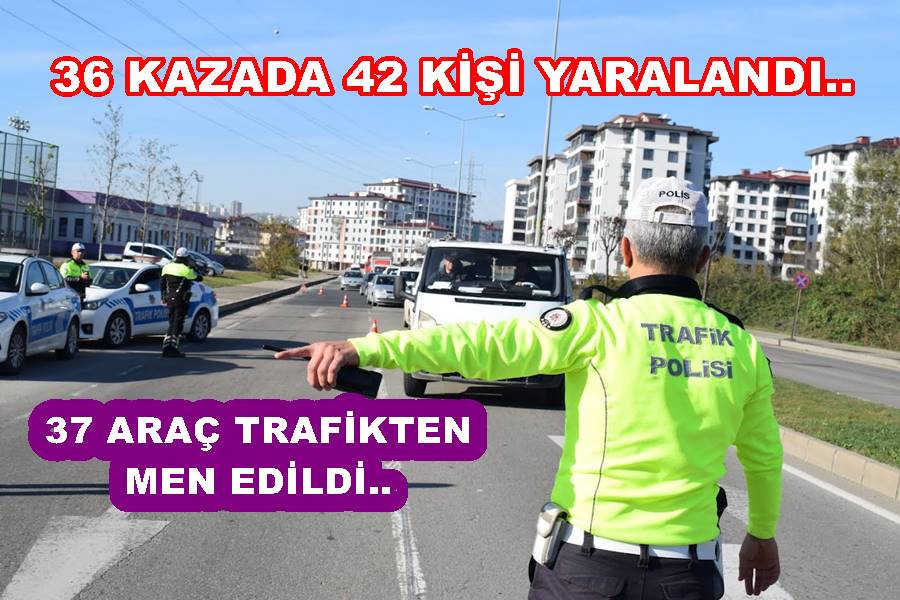Ordu il trafik şube müdürlüğü ekipleri polis sorumluluk geçtiğimiz bir hafta içersinde 36 yaralamalı trafik kazası meydana gelmiş, bu kazalarda 42 vatandaşımız yaralanmıştır.
