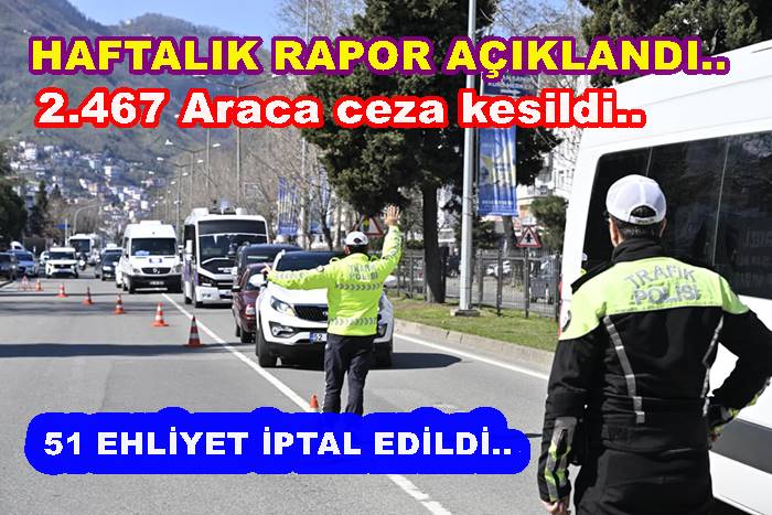 Diğer denetimlerle birlikte toplam 17.120 araç kontrol edilmiş, 2.467 araç