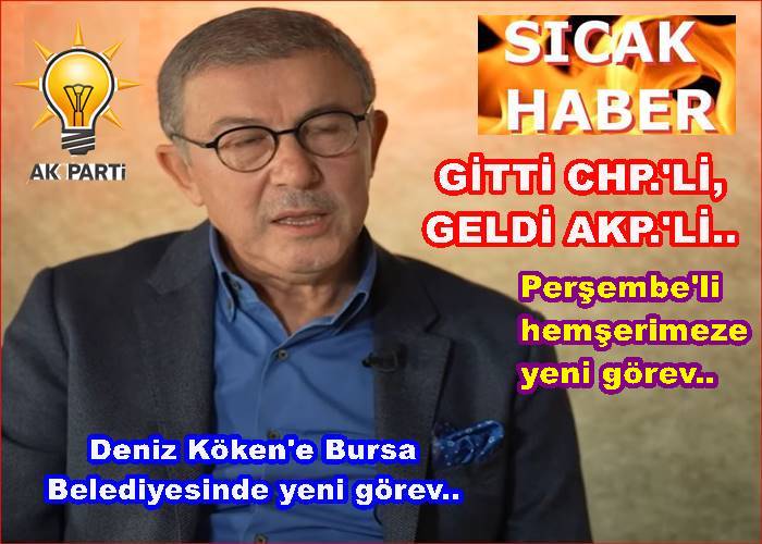 Son seçimlerde Eyüp Sultan Belediye başkanlığı görevini kaybeden DENİZ KÖKEN, Eyüp’ü CHP.’ye kaptırdı ama, son olarak CHP.’nin Bursa Belediyesini elinden kapan AK Partili Belediyede göreve başladı.