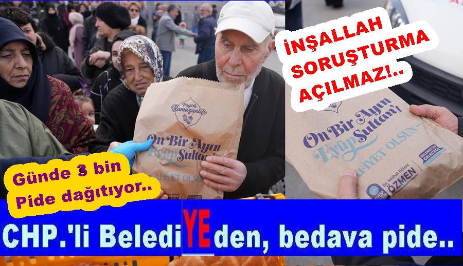 İktidar yönetimi tarafından vatandaşa bedava Çay-Çorba dağıtılıyor diye bazı CHP.’li belediyelere soruşturma açılmıştı. Acaba Ramazan pidesi dağıtıyor diye de açılır mı? Çünkü, şimdi de bedava Ramazan pidesi dağıtıyorlar.