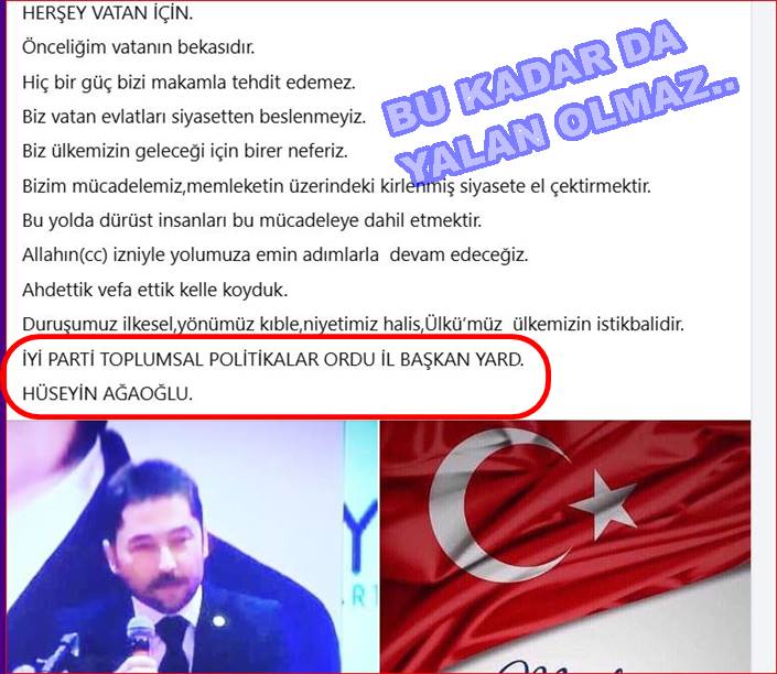 İşte bu kişi sosyal medya sayfasında kendinsin İYİ Parti yönetiminde olduğu konusunda da profiline eklediği için bu paylaşım da İYİ Parti Ordu il başkanlığı tarafından açıkça yalanlanmış bulunuyor.