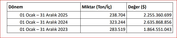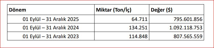 “Sezonun İlk Dört Ayında Alarm Veren Düşüş” 2025–2026 ihracat sezonunun ilk dört ayını kapsayan 01 Eylül – 31 Aralık 2025 döneminde yaşanan düşüşün ise çok daha çarpıcı boyutlara ulaştığını ifade eden SABIR, bu dönemde ihracatın 1980’li yılların seviyelerine gerilediğine dikkat çekti.