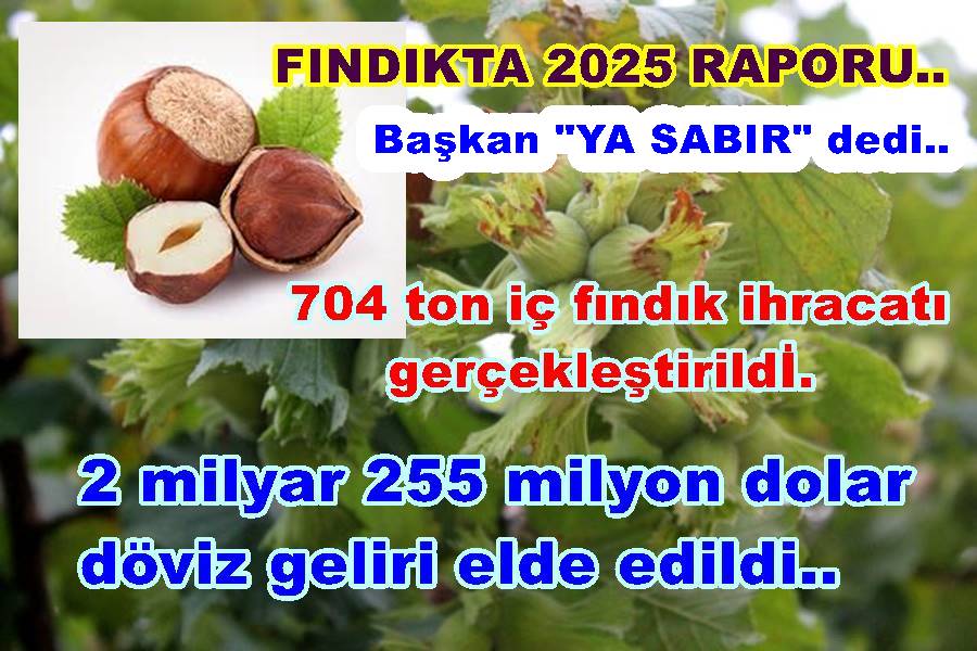 2025 Yılı Fındık ve Mamulleri İhracatına Yönelik (KFMİB) Başkanı Hasan Osman SABIR’ın Fındık konusunda değerlendirmelerde bulundu. Başkan Sabır yaptığı açıklamasında sanki bira daha “YA SABIR” diyerek açıklama yaptı..