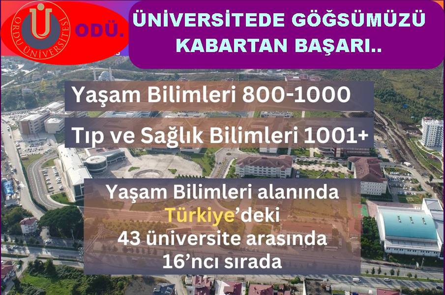 Ulusal ve uluslararası alandaki akademik başarısını her geçen dönem güçlü bir şekilde sürdüren Üniversitemiz, 2026 Alan Bazlı Dünya Üniversite Sıralaması’na göre Tıp ve Sağlık alanında 1001+, Yaşam Bilimleri alanında ise dünyadaki ilk 1000 üniversite arasında yer alma başarısı gösterdi. Bunun yanı sıra Ordu Üniversitesi THE 2026 Konulara Göre Sıralamalar’da Türkiye’den 43 üniversitenin listelendiği Yaşam Bilimleri alanında 16’ncı sırada yer aldı.