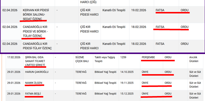 Ordu geneli denetimlerde Fatsa ve Ünye ve Perşembe ilçeleri yer alırken, Ordu merkezde faaliyet yapan firmaları da sorgulamak gerekir.
