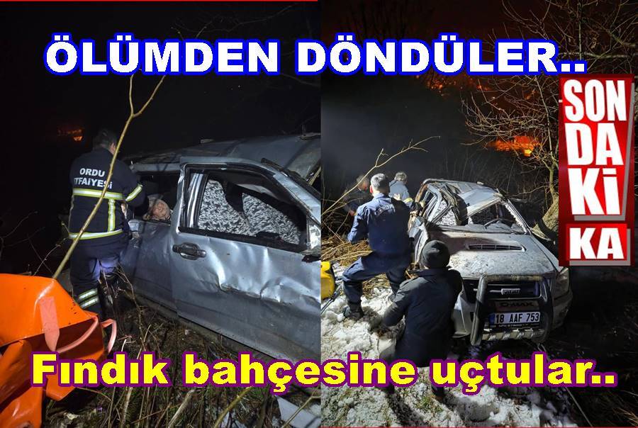 Bu akşam teravih namazı sonrası Perşembe’de korkunç bir trafik kazası meydan ageldi. Yaklaşık 20 metre Fındık bahçesine uçan araçta 3 kişi ölümden döndü..