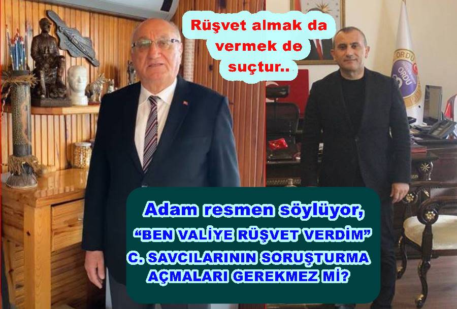 Ordu’da Vali Tuncay Sonel zamanında ise bazı kişiler de Tuncay Sonel’ rüşvet almakla suçlamakla, kendisini de rüşvet verdiğini açık ve net olarak kamu oyu gündemine resmen açıklamış bulunuyor.