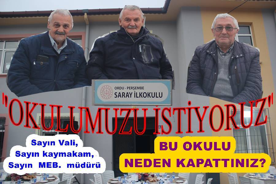 Son olarak Mahalle halkının bir çoğu ve öğrenci velileri öğrencilerin geri getirilerek okulun yeniden eğitime açılmasını isteyerek, başta İlçe Kaymakamı, İlçe Milli Eğitim müdürü, Ordu valisi ve İl Milli Eğitim müdürü Mehmet Fatih Vargeloğlu’na seslenerek, “Hatta Köyden şehre değil, şehirdeki öğrencilerden bir kısmı Mahallemize/köyümüze taşınsın, Mahalle halkı daha medeni, daha eğitici bir eğitimle, Köylere neşe gelsin, şenlik gelsin, 4 Caminin olduğu 700 nüfusa sahip bir Mahalleye bir okulu fazla görmeyin, eğitimin daha önemli olduğu yerde, 4 Caminin olması kimseye bişey kazandırmaz” diyerek bu sorunun gelecek sezon çözülmesini beklediklerini ifade ettiler.