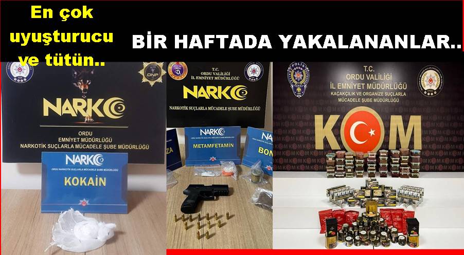 Ordu İl Emniyet Müdürlüğü ekipleri  bir haftada 49 şüpheli yakaladı,  19’u tutuklandı..