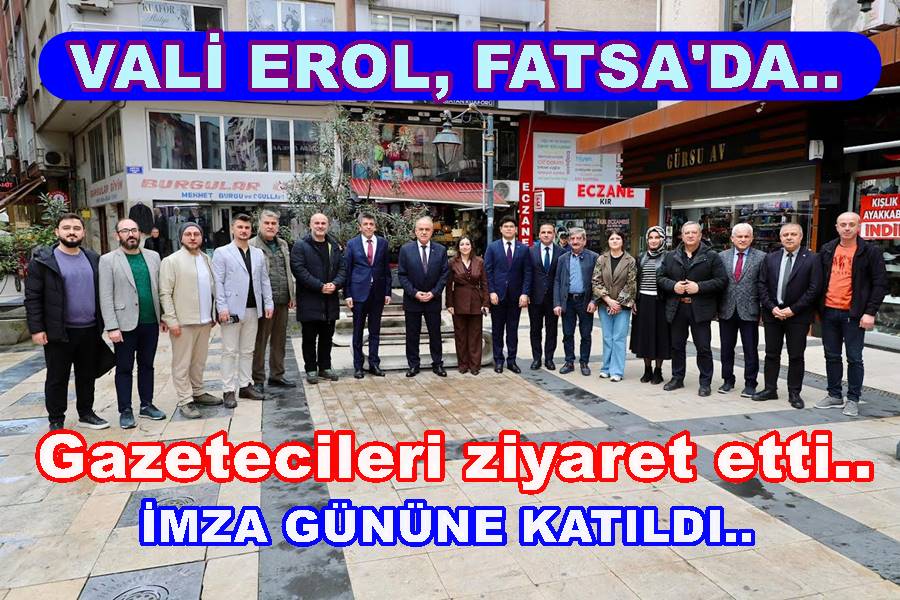 Fatsa ilçemizde görev yapan basın mensupları tarafından mesleki dayanışmayı güçlendirmek ve yerel basının kurumsal yapısını sağlamlaştırmak amacıyla Şubat ayında kurulan Fatsa Gazeteciler Cemiyeti ile Fatsa Gazeteciler ve Basın Derneği kurucu başkan ve üyeleri, resmi kuruluş işlemlerinin ardından Vali Muammer Erol’u ziyaret etmişti.