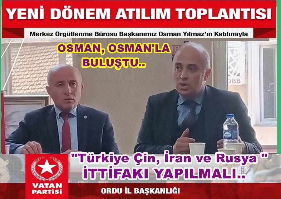 Bu gelişmelerin çok önemli olduğunu vurgulayan Osman Yılmaz, Türkiye’nin ticari ve ihracat konularını gündeme getirerek, “Biz diğer siyasi partilerle görüşüp konuşmaya hazırız. İran’a düşman ol, Rüsya’ya düşman ol, Çin’e düşman ol. Türkiye’nin güvenliğinin sağlanması için de bir an önce Türkiye Çin, İran ve Rusya ittifakının kurulması gerektiğini” ifade etti..
